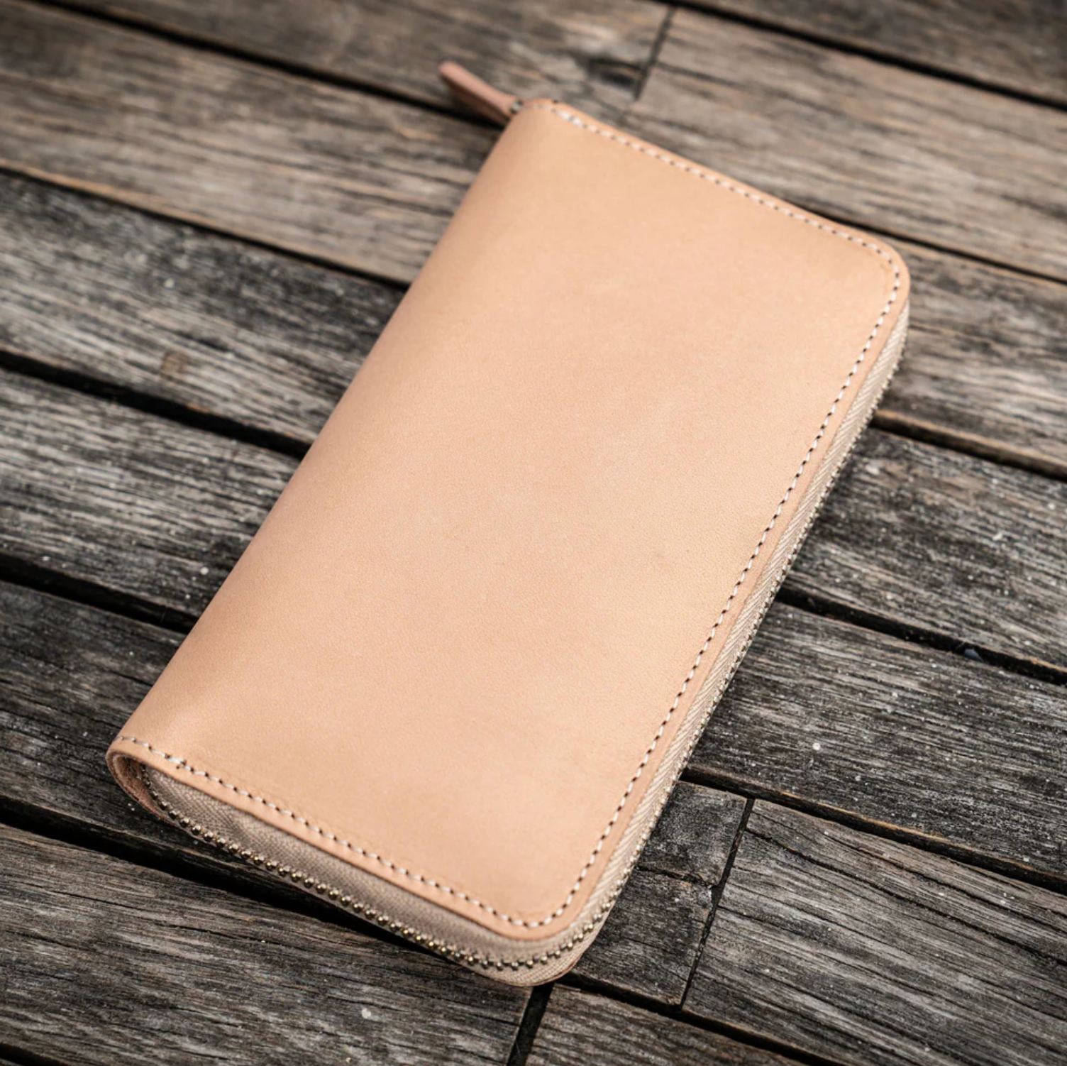 Vönduð handsaumuð leðurpennaveski með rennilási. Leðrið er sérvalið með tilliti til þess að veskið eldist og veðrist vel og verði því fallegra með árunum og áratugunum eftir mikla notkun.