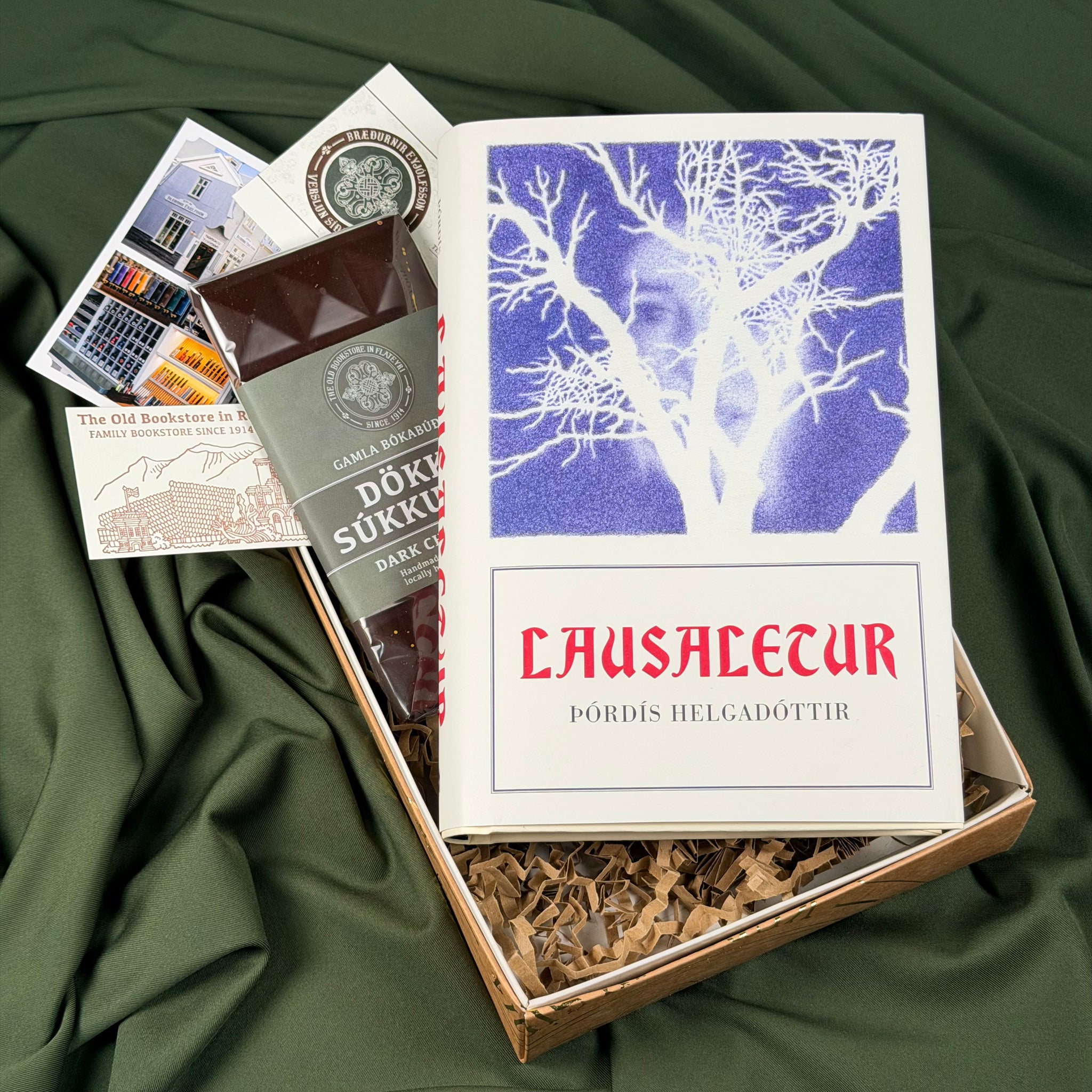 Einstakur gjafapakki sem inniheldur góða bók, árituð af höfundi, dásamlegt handgert súkkulaði frá Gömlu Bókabúðinni og handgert leturpressað bókamerki. Í pakkann höfum við einnig laumað afsláttarávísun sem hægt er að nota í verslunum okkar.